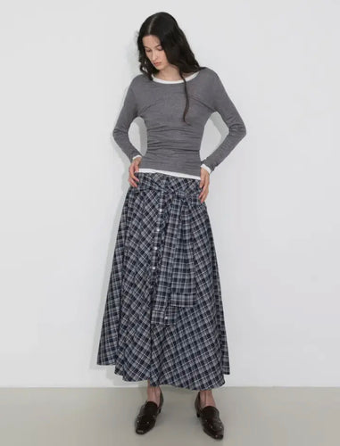Plaid Maxi Skirt with shirt sleeve – Brown or Blue