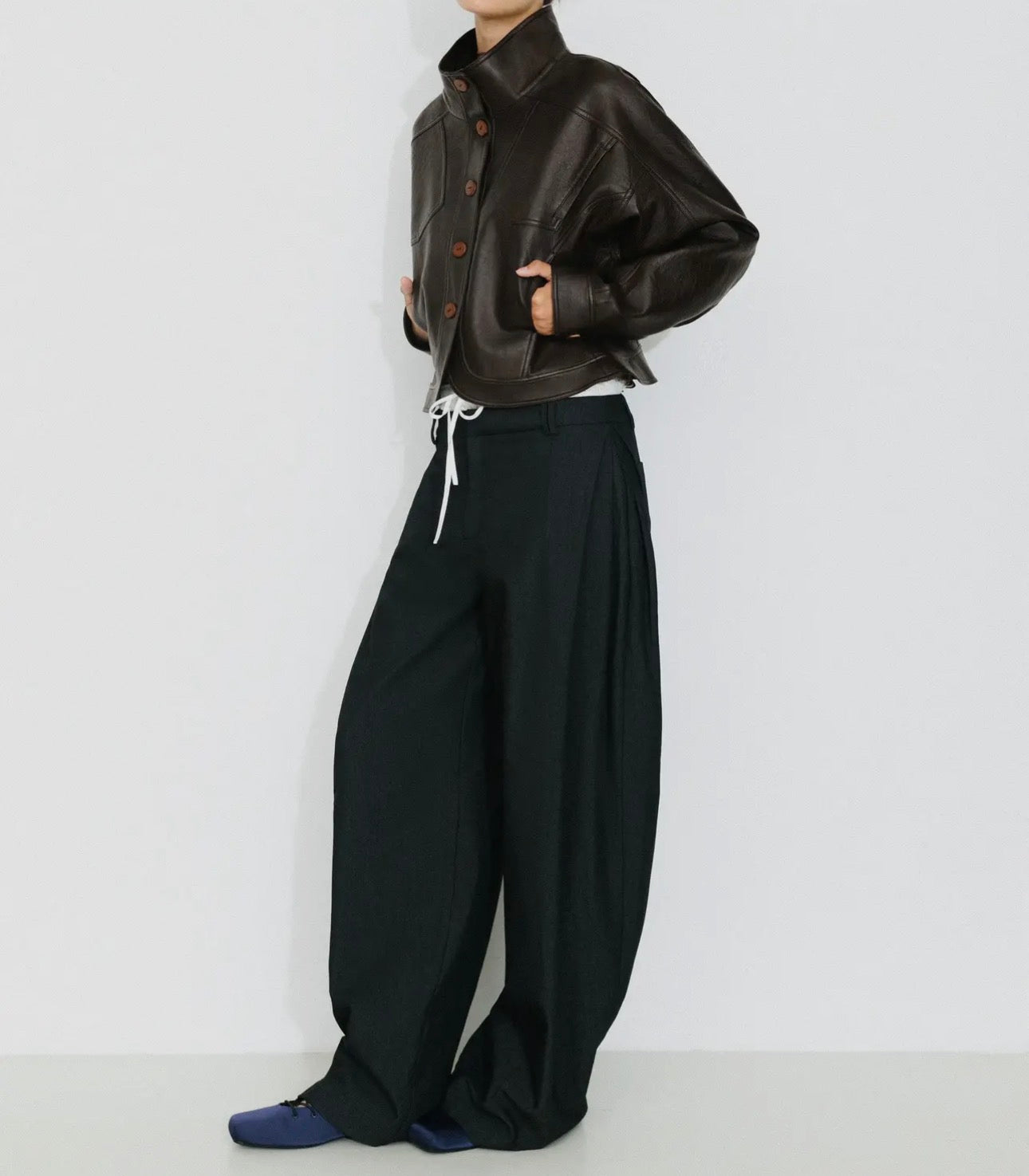 Pair it with wide-leg trousers or tailored denim for a contemporary, fashion-forward ensemble.