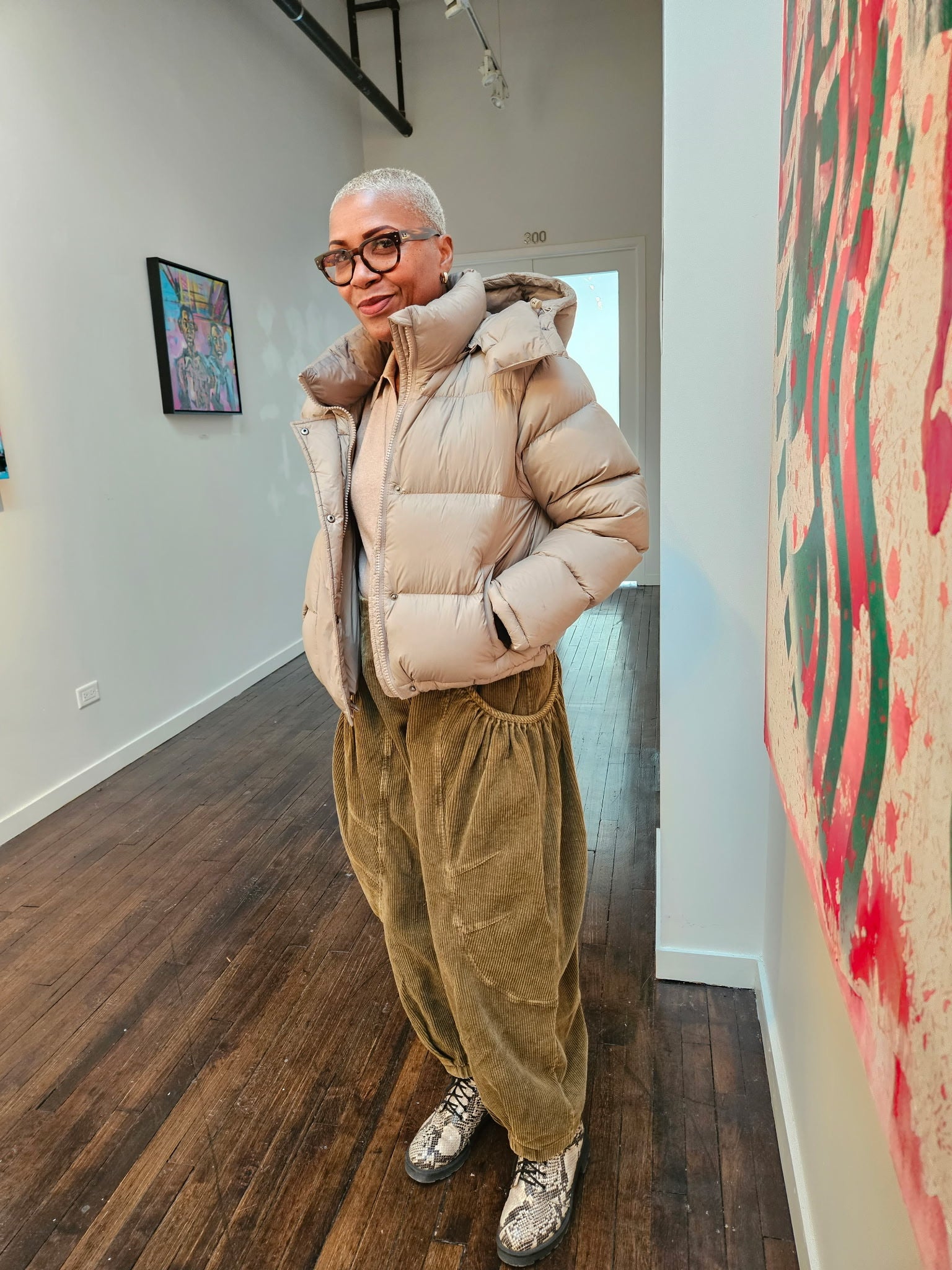 Designed to run a little generous, this style offers a chic, artsy vibe that pairs beautifully with fitted tops, blazers, and your favorite booties—exactly how Tabby styles it.