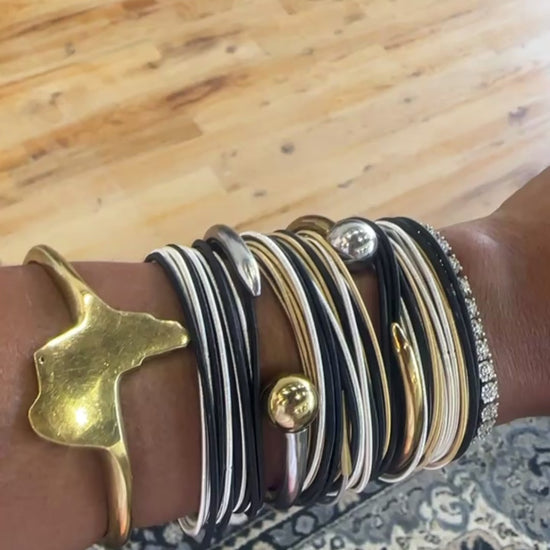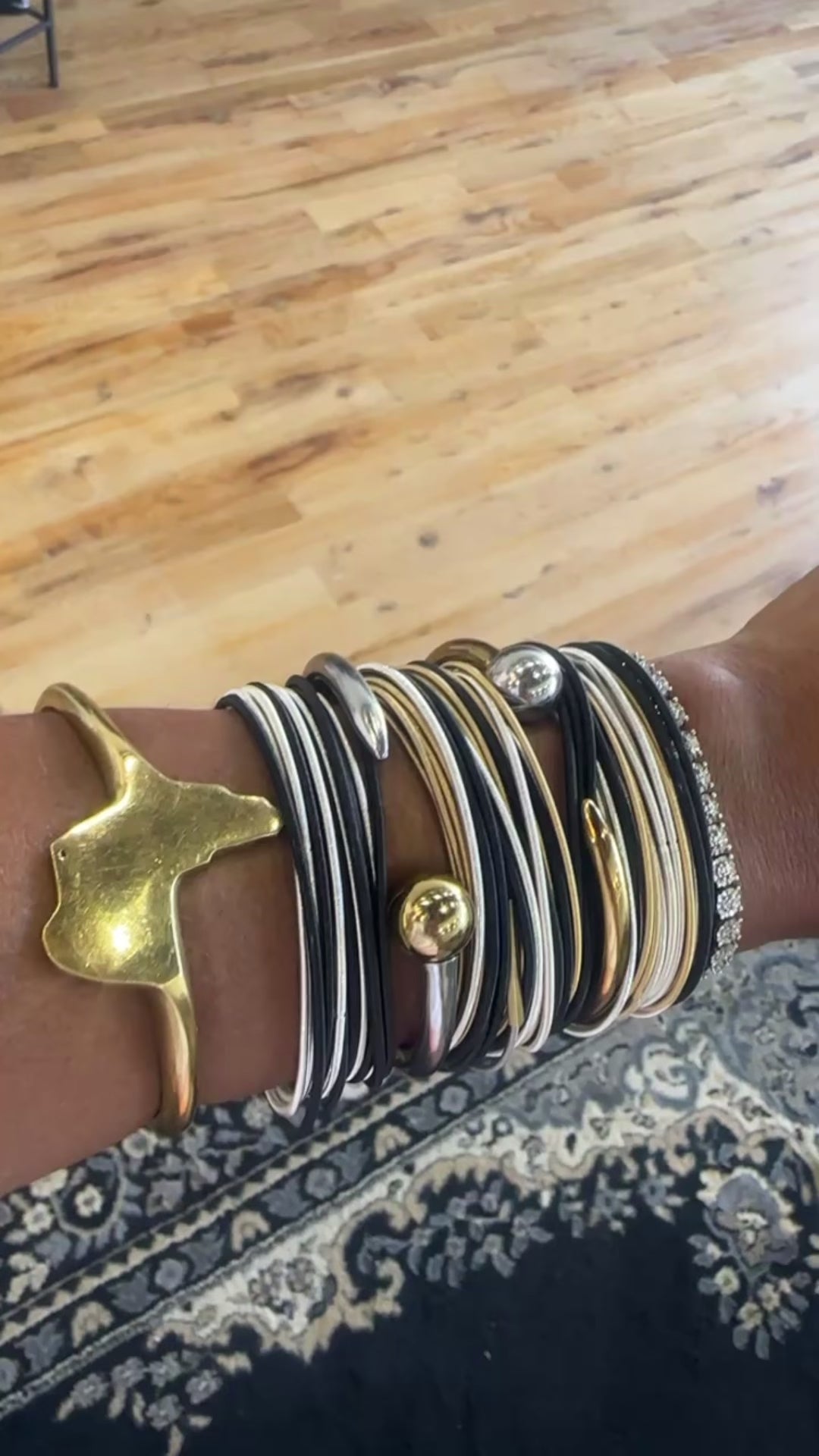 Stack your wrist with this set of Stainless steel stretchy guitar string bracelets. Each set features 20 stainless steel bracelets.